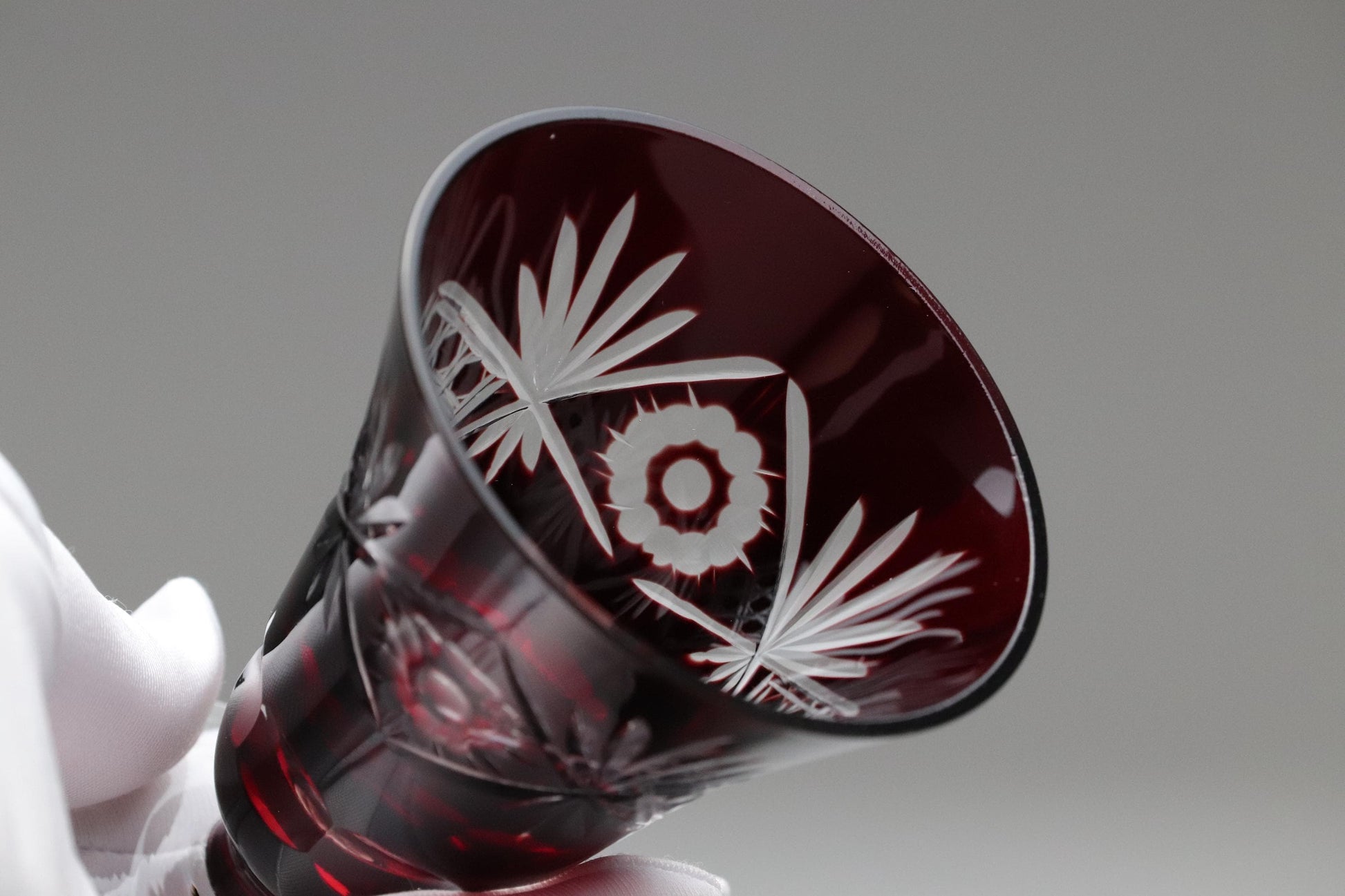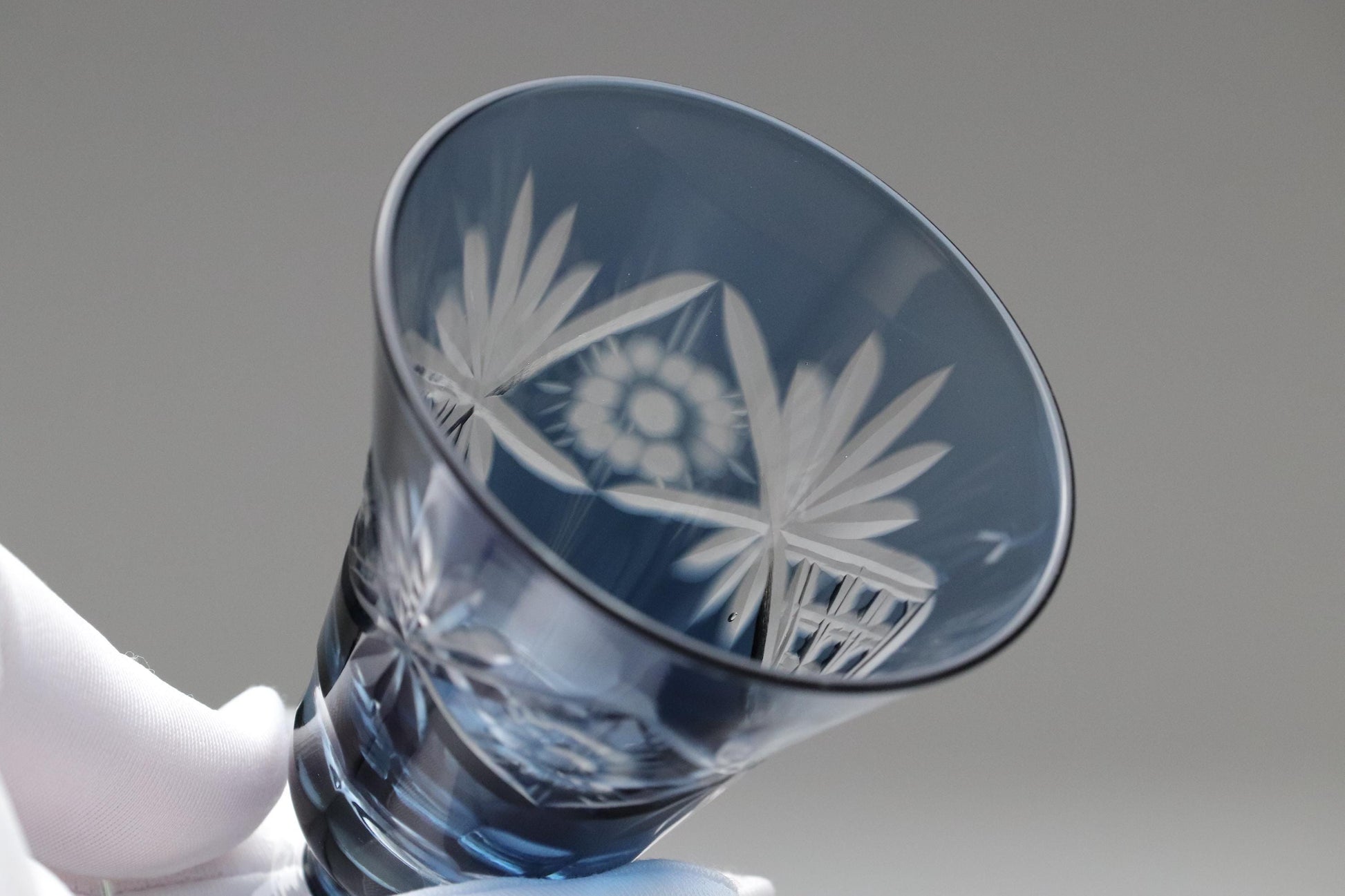 Japanese Cut Glass Goblets in Red and Blue – Edo-style Traditional Pattern Glassware – Elegant Drinkware for Whisky, Sake or Cocktails