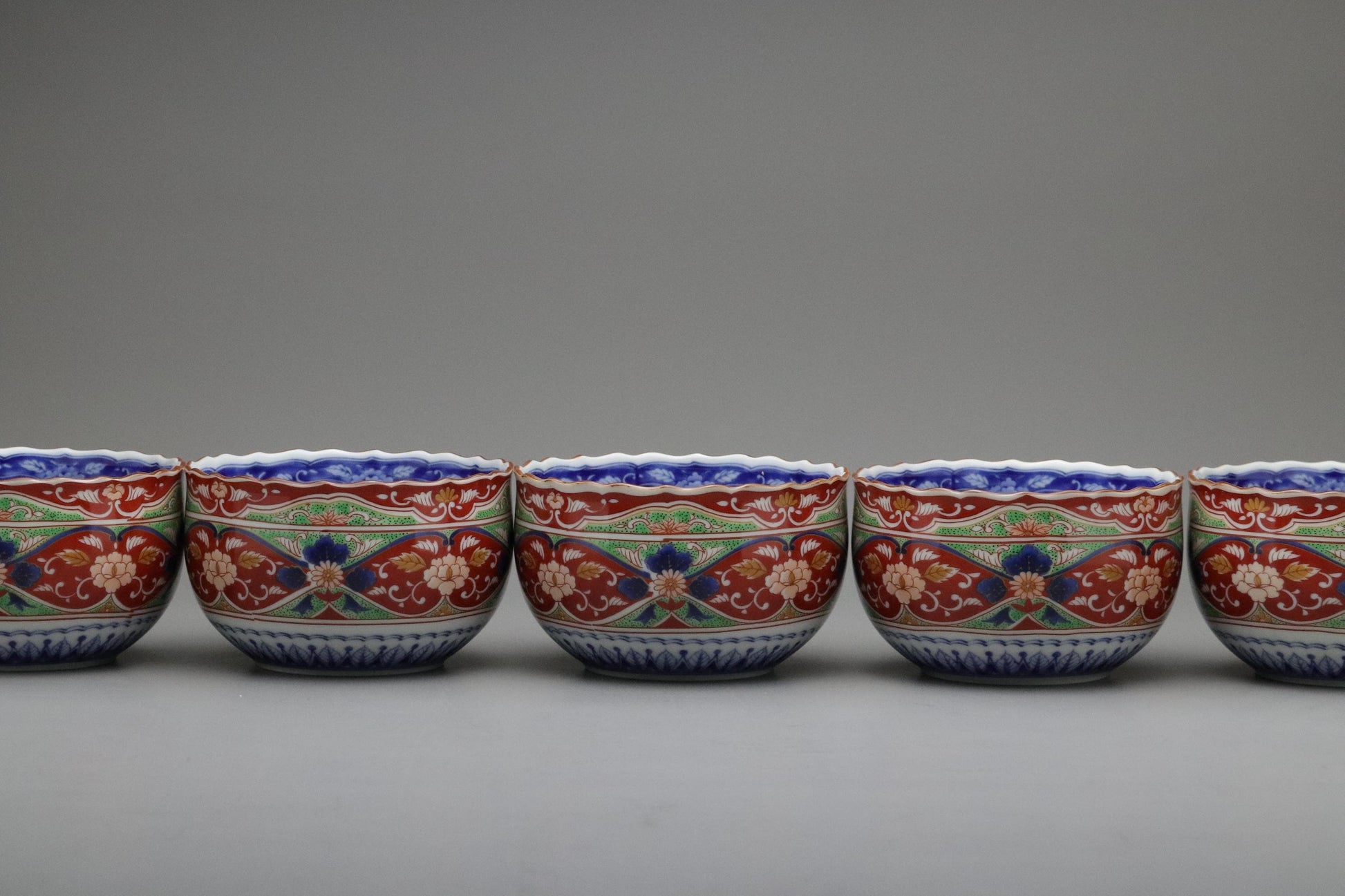 Kozangama Sometsunishiki Hanacho Teacups Set | Authentic Hand-Painted Arita Ware Porcelain Yunomi for Traditional Japanese Tea Ceremony Gift