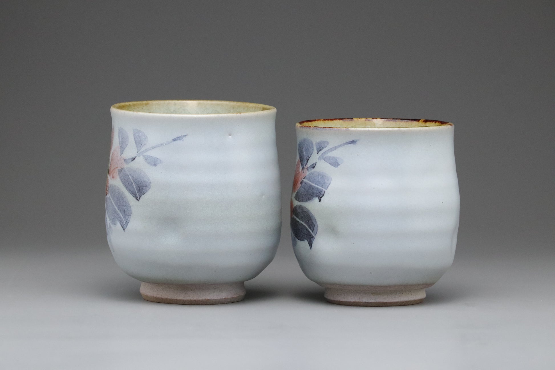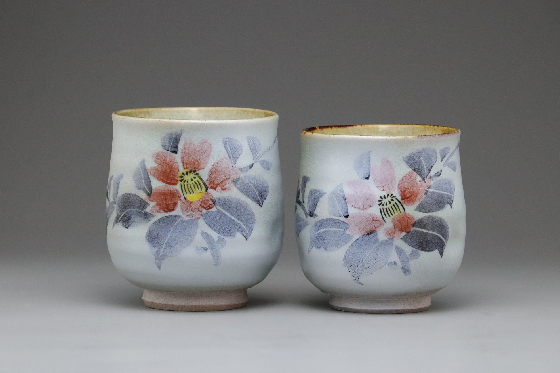 Kutani Ware Yunomi Pair – Hand-Painted Japanese Porcelain Tea Cups with Floral Design – Traditional Kutani Pottery – Made in Japan