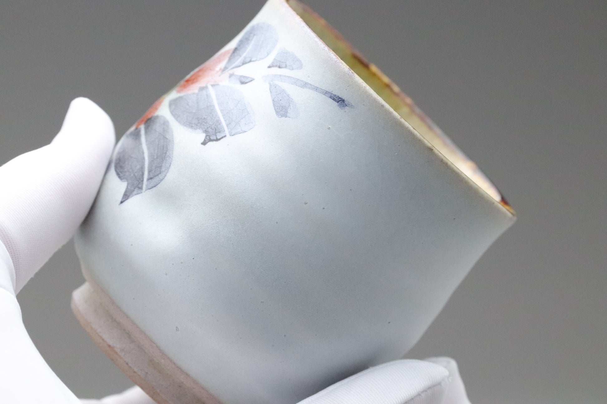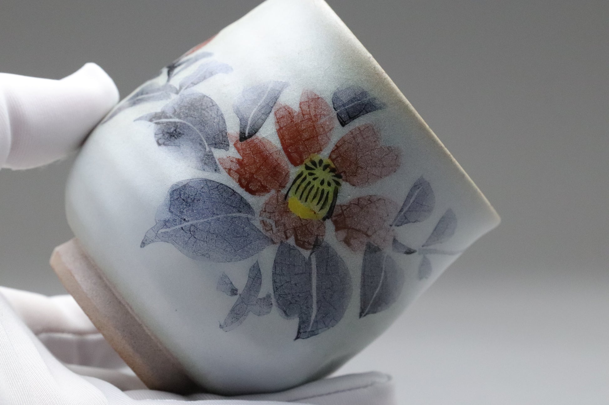 湯呑みの表面には、手描きの椿の花が描かれています。