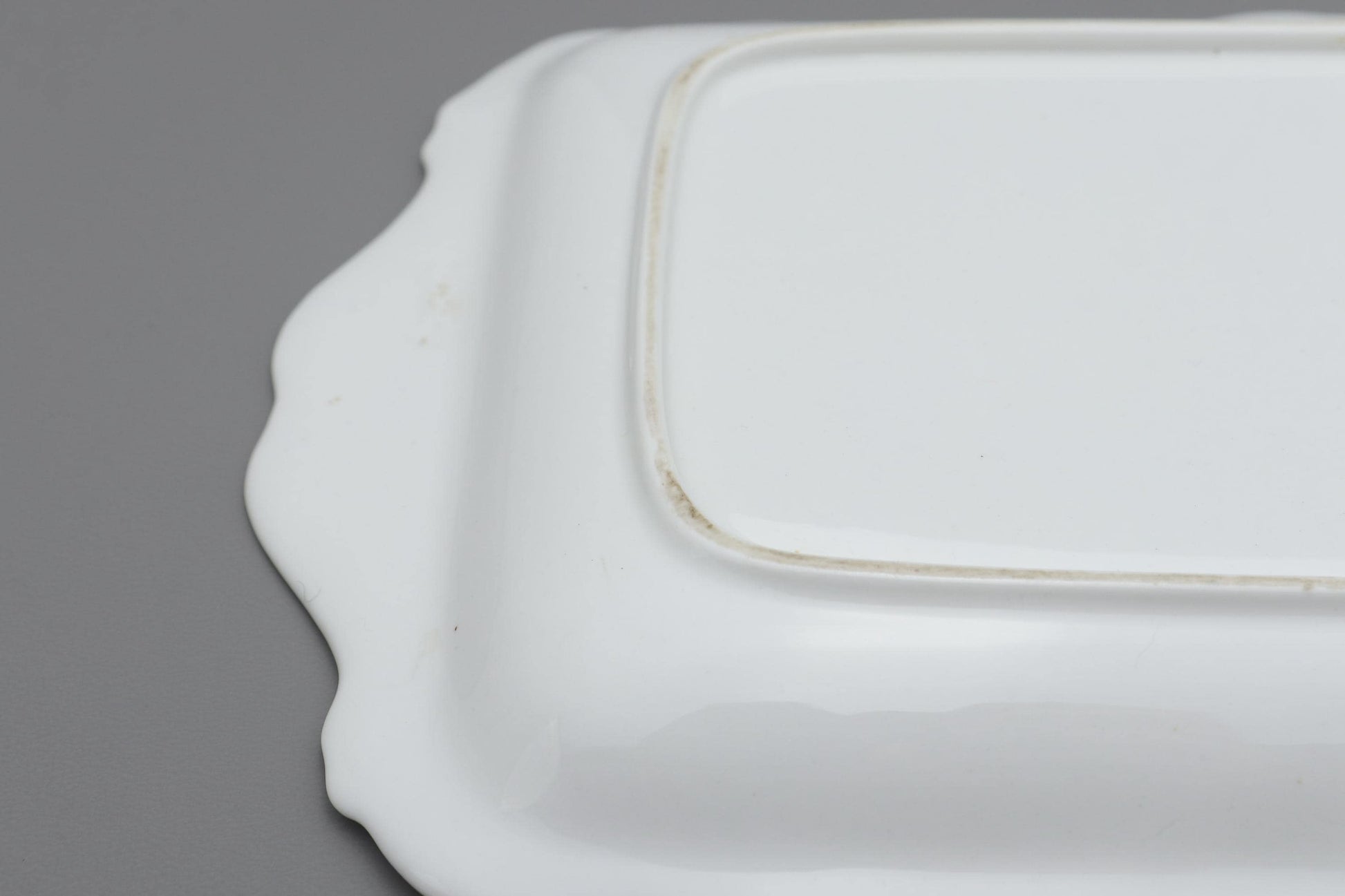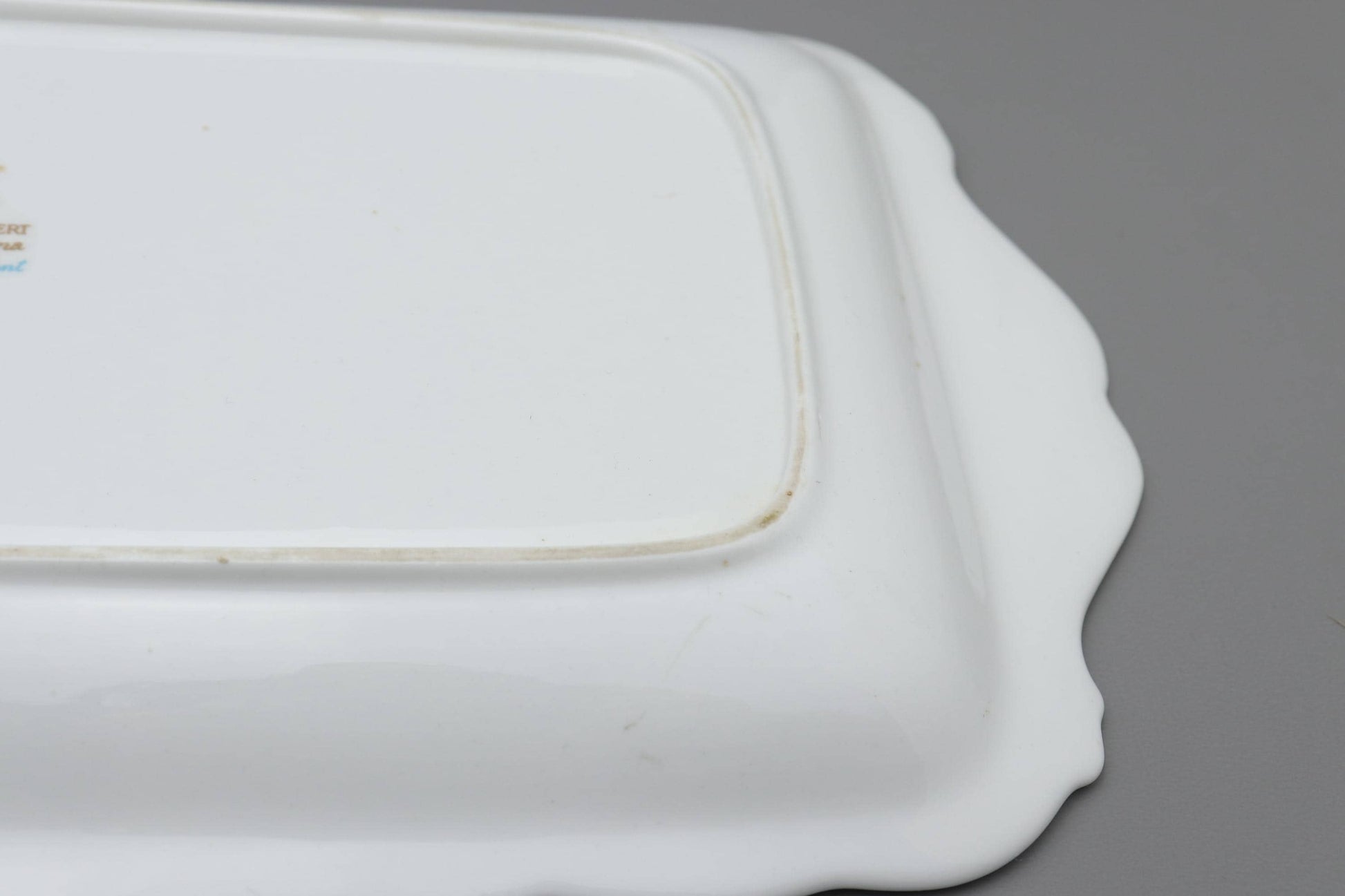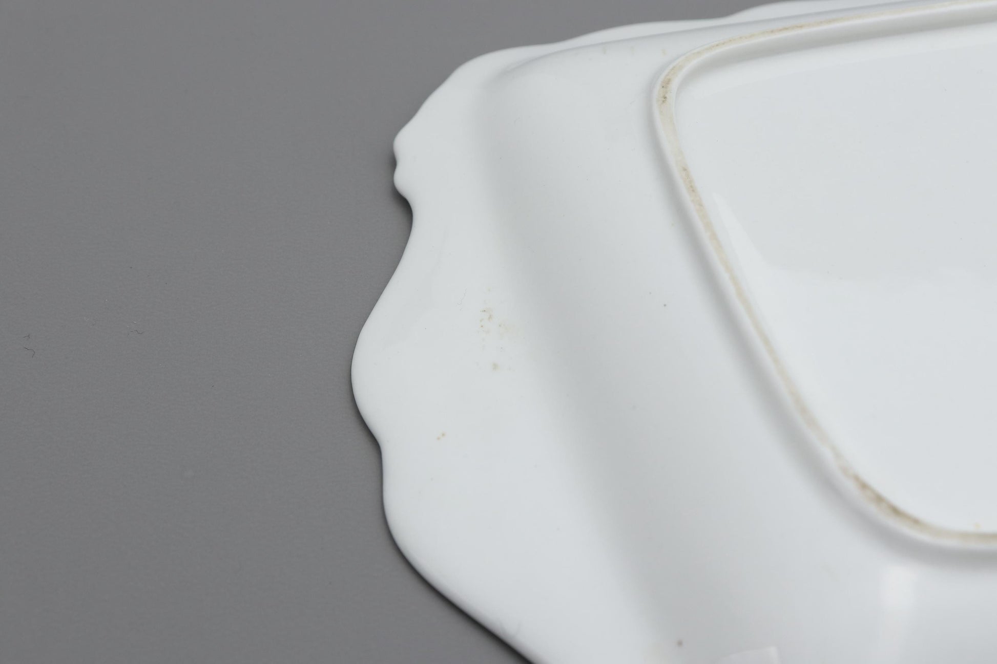 このロイヤル・アルバートのプレートは、広島県の老夫婦が大切に保管していたものです。ロイヤル・アルバートは1986年に創業した英国を代表する陶磁器ブランドで、英国王室御用達の食器を手掛けるなど、豊かな歴史を誇ります。その豊かな花模様と優美なシルエットは、まさにその伝統を象徴しています。金色の装飾が白磁に美しく映える、贅沢なプレートです。